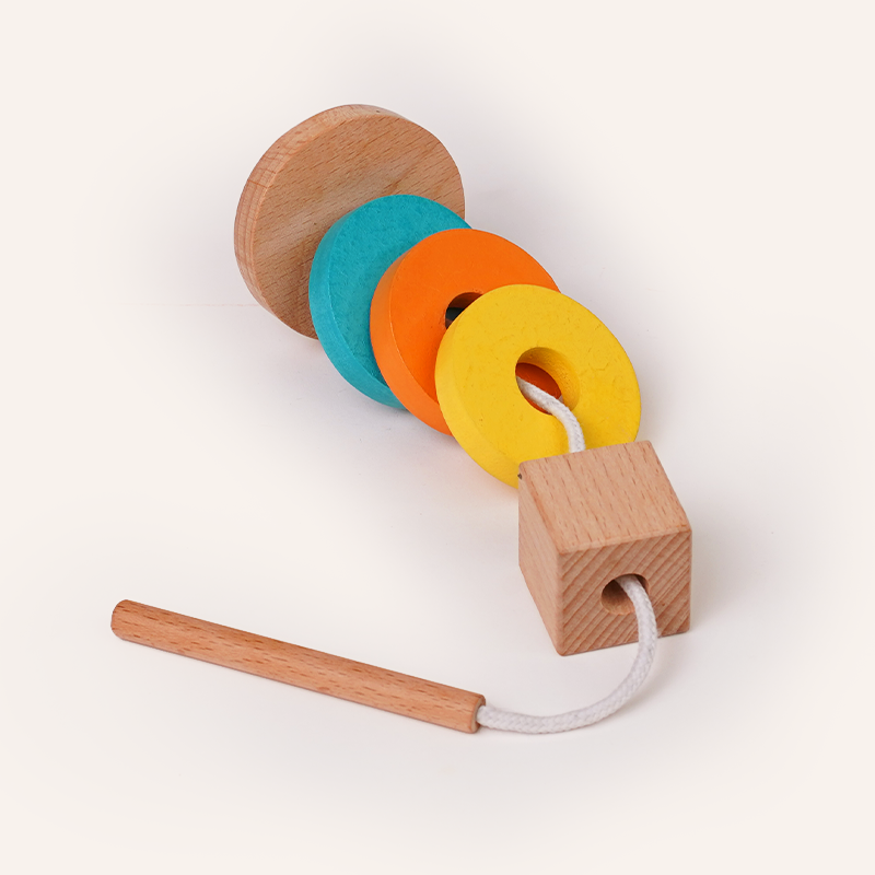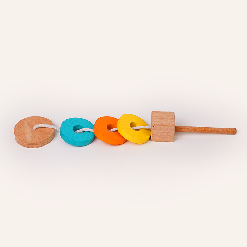 • Show your toddler how to stack the rings and then flip to the beaded side for sliding play. Let them experiment freely.