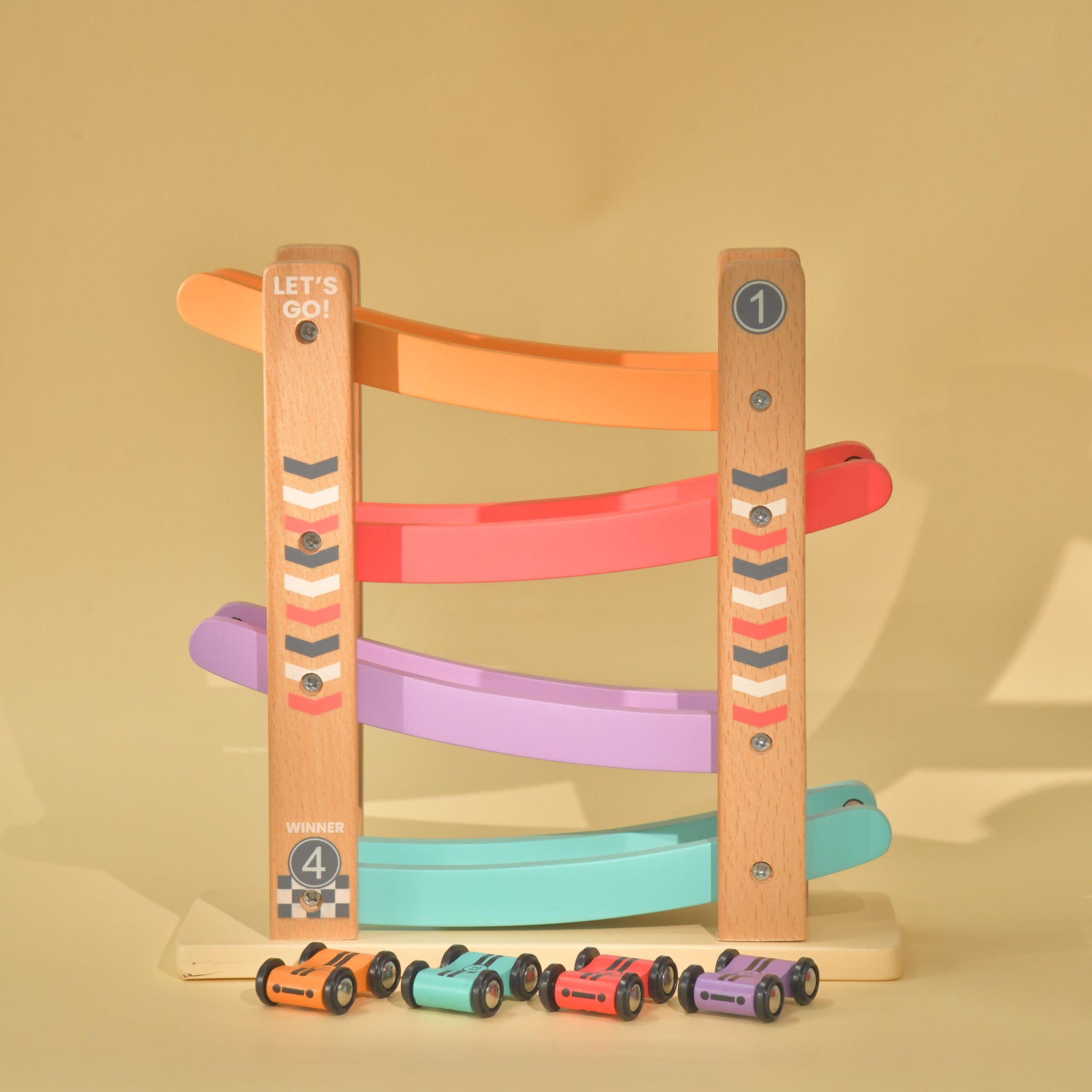 Crafted from durable wood and coated with child-safe, non-toxic paints, this ramp racer is designed for safe and lasting play. More than just entertainment, it helps toddlers and young kids develop fine motor skills, hand-eye coordination, and focus while sparking curiosity and imaginative play. A timeless gift for birthdays, holidays, or everyday fun, this ramp racer guarantees hours of joy.