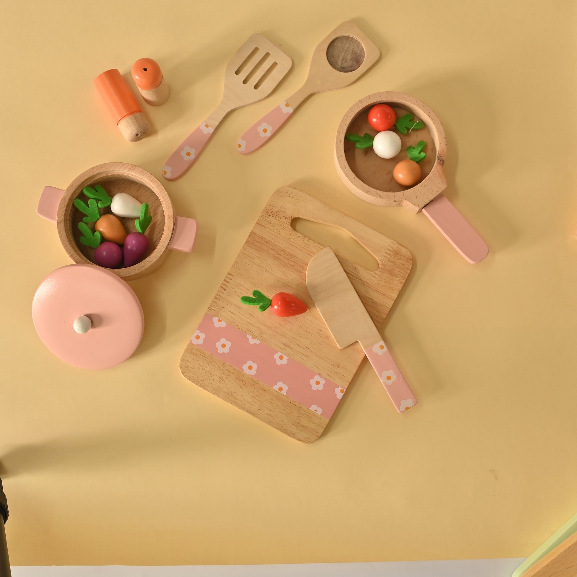 Inspire your little chef with this Wooden Kitchen Playset - complete with utensils, cookware, and colorful veggies for endless pretend cooking fun! Safe, durable, and eco-friendly for worry-free play.