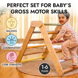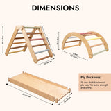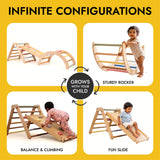 Rooted in the Pikler philosophy of child-led movement, this 3-in-1 climbing set is designed to grow with your child from their very first climbs to their boldest adventures. The Pikler Triangle, Convertible Slide, and Arch work together as a complete movement environment - encouraging children to explore at their own pace, build physical confidence, and develop essential motor skills through unstructured, self-directed play.