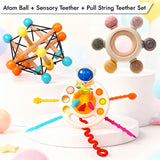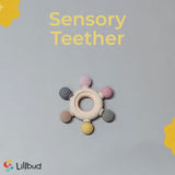 The Sensory Teether is a baby-safe silicone toy designed to soothe sore gums while offering textured surfaces for rich sensory exploration.