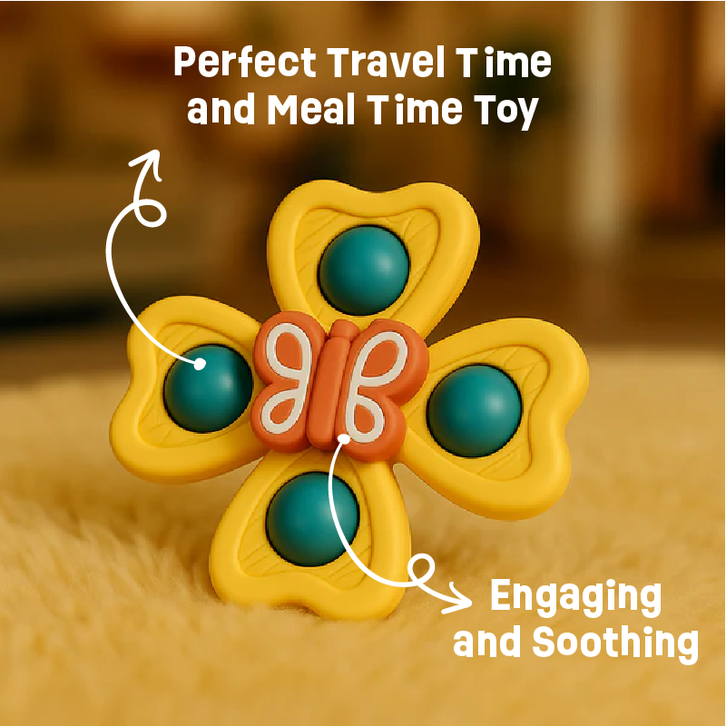 The Twisty Spinner is a compact, sensory-rich toy with four softly textured spokes designed for little hands to grasp, twist, and spin.