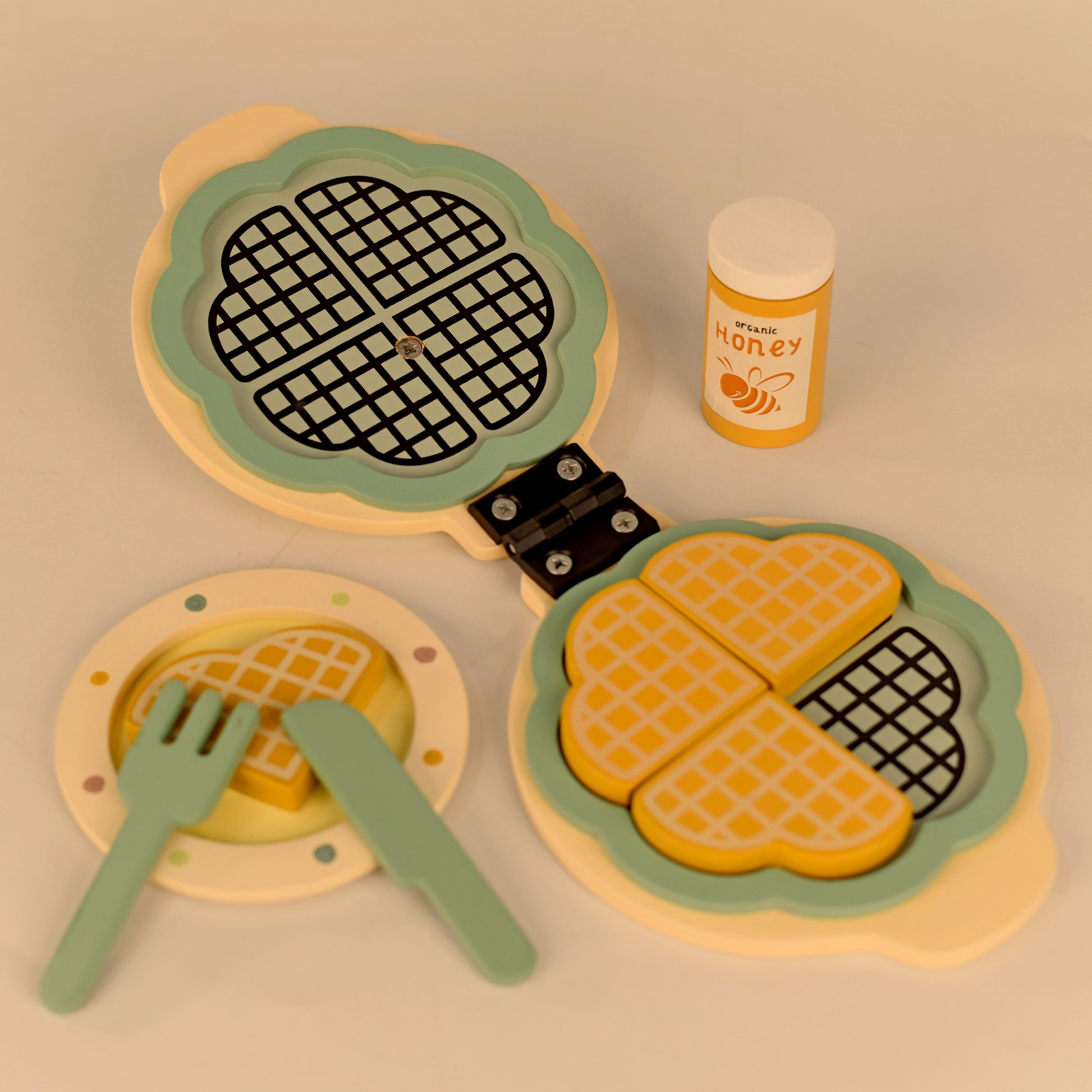 LiLLBUD's Waffle Maker Playset transforms ordinary play into a delightful culinary adventure. With a rotating timer dial, opening-and-closing lid, and realistic accessories, kids can “cook” and serve their favorite waffles just like grown-ups. Crafted from high-quality wood with smooth, rounded edges and painted in non-toxic, water-based colors, it’s designed for safe, durable play.